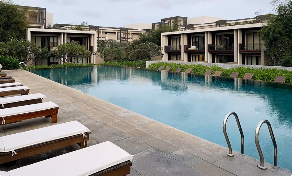 Kristallklares, hygienisches Poolwasser, kalkfreie Duschen und geschützte Rohrsysteme – wir sorgen für eine einwandfreie Wasserqualität für höchste Ansprüche in Hotels und Resorts.